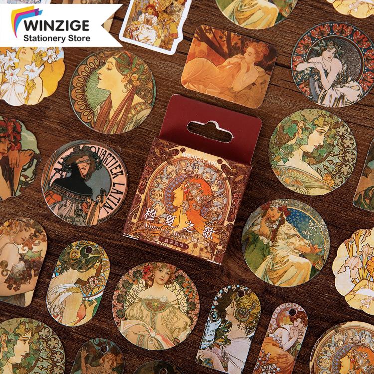 Winzige 46Pcs Stickers Set Vintage Painted Mural Design Sticker Gift Album Journal Deco | Shopee ...