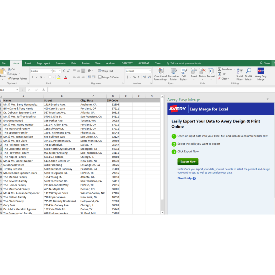 Export excel to address labels