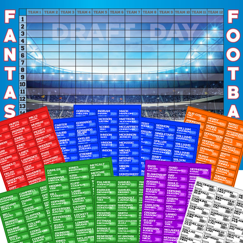 Fantasy Football Draft Board Labels 2022 - OnlineLabels We've created printable fantasy football draft labels so you can focus on who's choosing who. Download our updated draft lists below and place an order for our 4" x 1" labels, the perfect size for your fantasy football draft board. Wait 8 agonizing months for football season to start again? Check.
